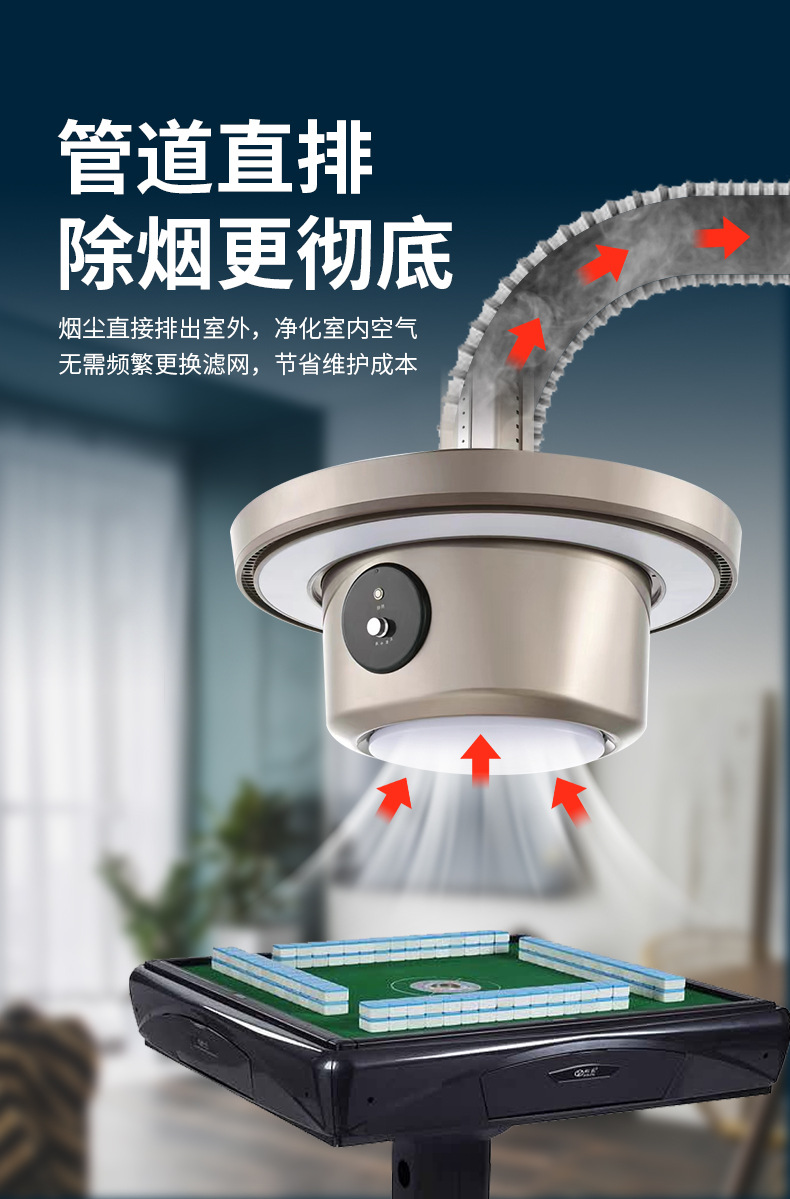 吸力大,聲音小,重量輕。360°環吸設計,節省管道耗材。可在室內制造空氣循環,全方位凈化空氣吸煙攏煙效果卓越。