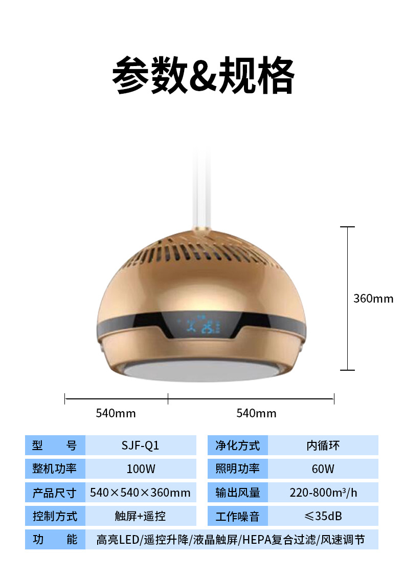 【功能】高亮LED/遙控升降/液晶觸屏/HEPA復合過濾/風速調節