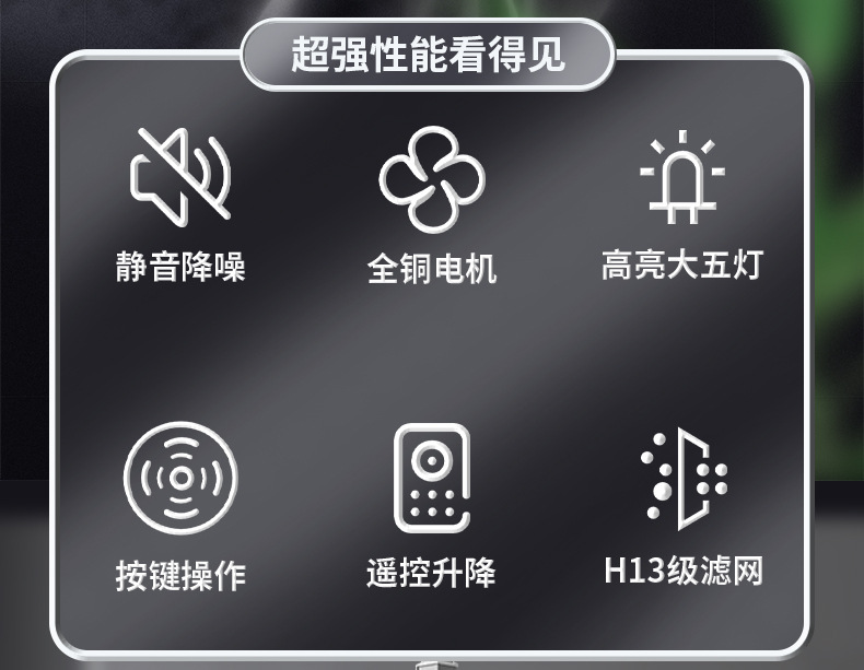 酒店、棋牌室、包間、KTV、會所、候車廳等除煙除塵凈化燈,集吸煙、照明、裝飾三位一體