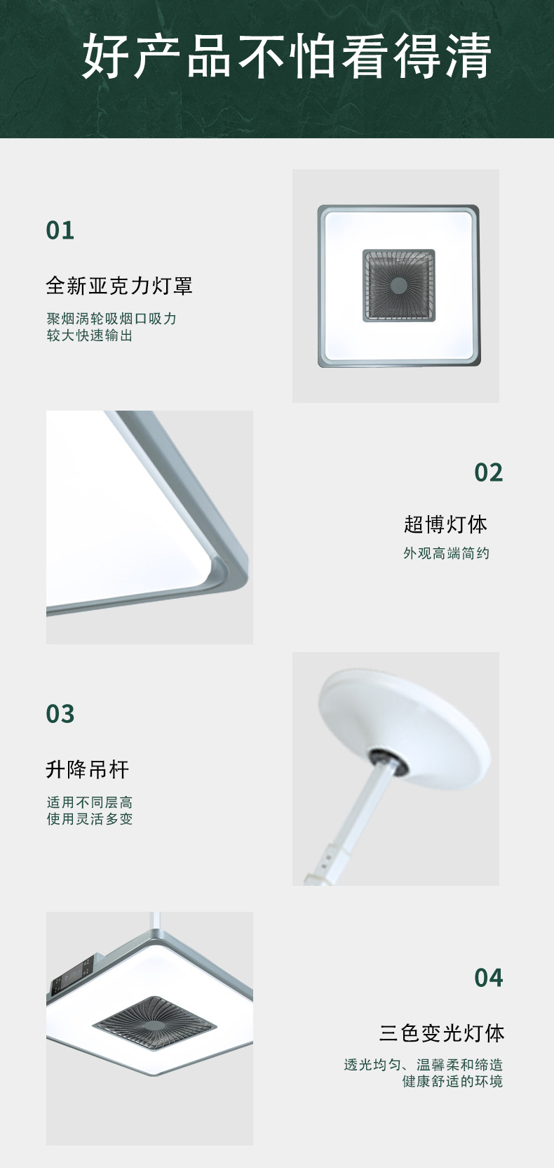 - 直排吸煙凈化燈強勁環(huán)吸四邊燈光D8-W