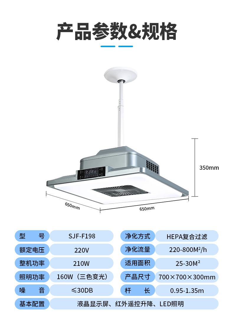 - 大燈遙控升降內(nèi)循環(huán)吸煙凈化燈588C