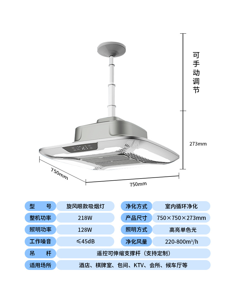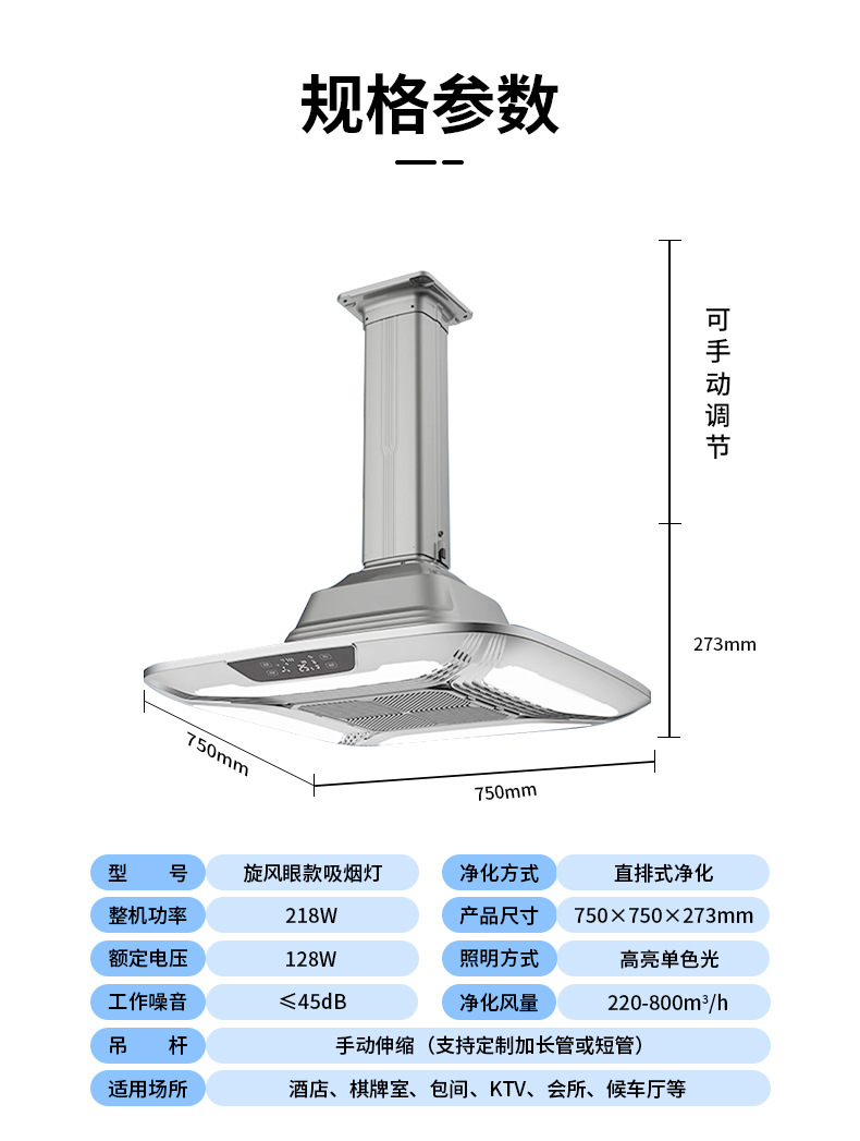 棋牌室、會客廳、包間、KTV、會所、候車廳等除煙除塵凈化燈,集吸煙、照明、裝飾三位一體;學校教師、幼兒園、庫房、車間、實驗室、無菌室、手術室、更衣室、灌裝間、包裝間賓館、酒店、客房等需要殺菌消毒的場所均適用